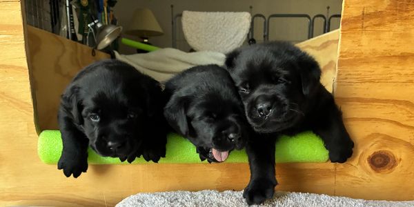 Michelle bred her beautiful yellow Hooley to her gorgeous chocolate Duffy and all four puppies in the litter are black -